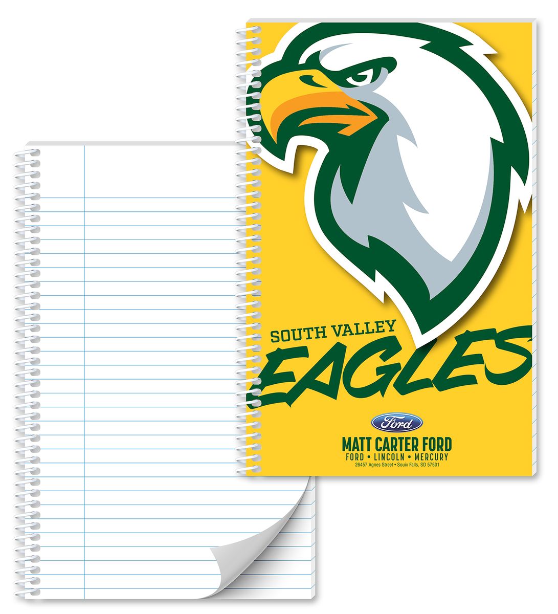 Customize the cover with your imprint. The pages are spiral bound on the left side. The stock inside pages are lined.